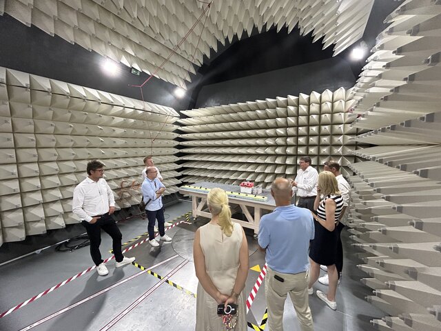 Gemeinsam mit unseren Mitgliedern durften wir einen Blick hinter die Kulissen des elektromagnetischen Prüflabors werfen. Dabei erhielten wir praxisnahe Einblicke in die Welt der elektromagnetischen Verträglichkeit (EMV) und erfuhren, wie Produkte auf Herz und Nieren geprüft werden, bevor sie den Weg in den Markt finden.